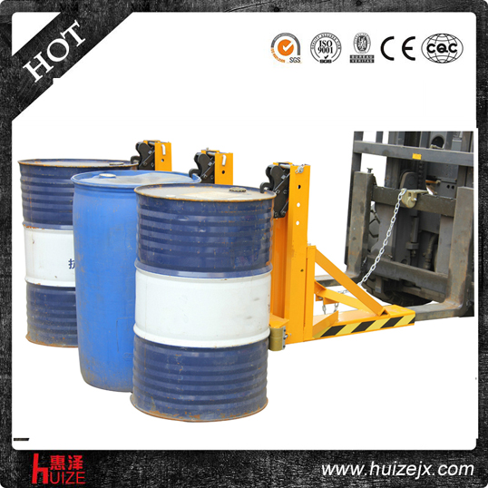 重型三油桶夾單鷹嘴DG1500C純機械機構設計可與叉車方便地配合,僅依靠叉車的動作,不需要其它的動力,可自動一次搬運3個桶, 能處理更多類型的桶,包括鋼制油桶和塑料油桶, 配置可拆換式柔性耐磨保護墊,有效保護油桶并緩沖叉車行駛過程中的震動, 能在集裝箱等這樣狹小的環(huán)境內裝卸桶裝物質,可極大地提高空間利用率, 與貨叉連接配有自鎖裝置確保油桶夾在坡度上和顛簸路面使用時不會滑落.